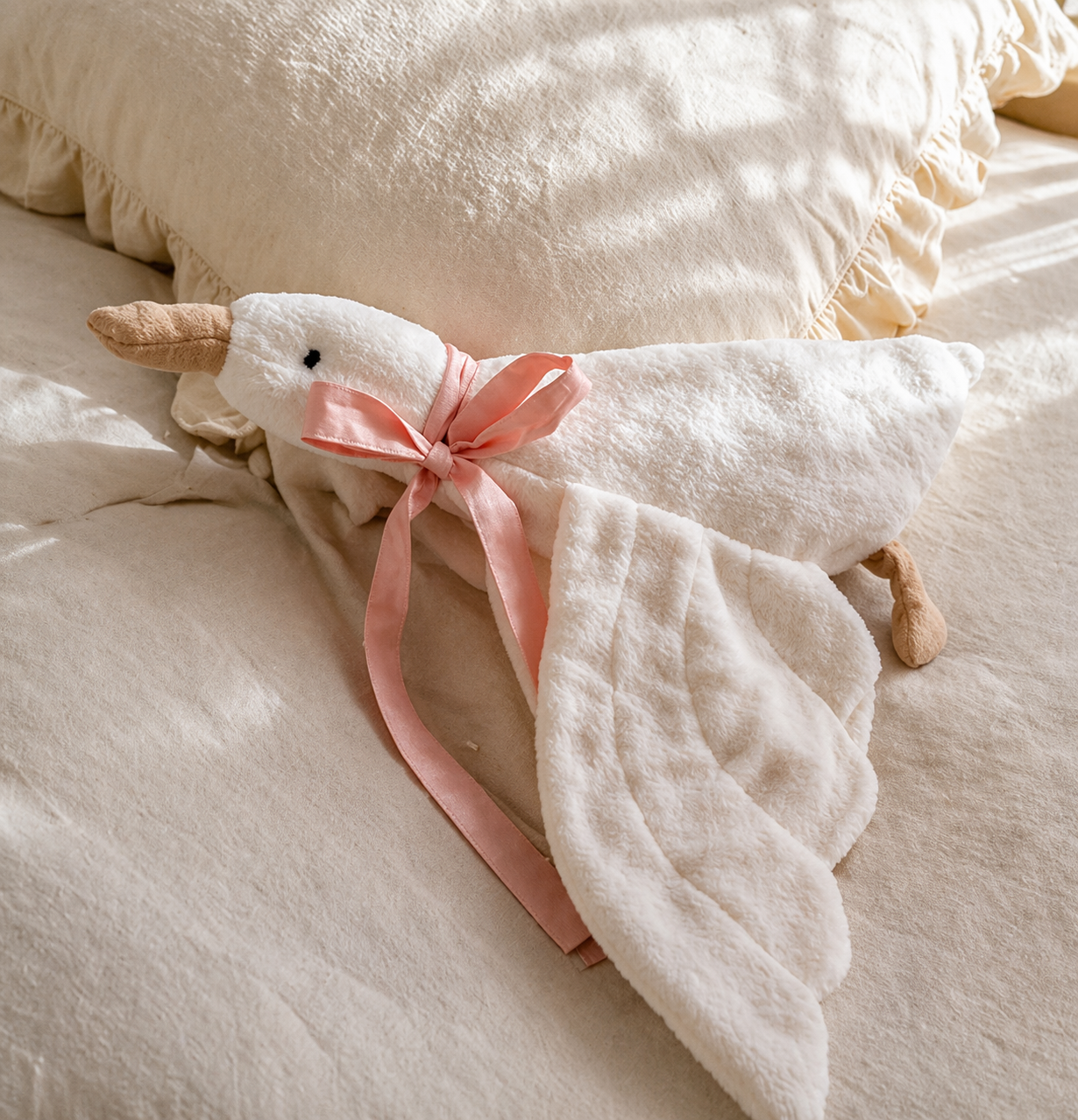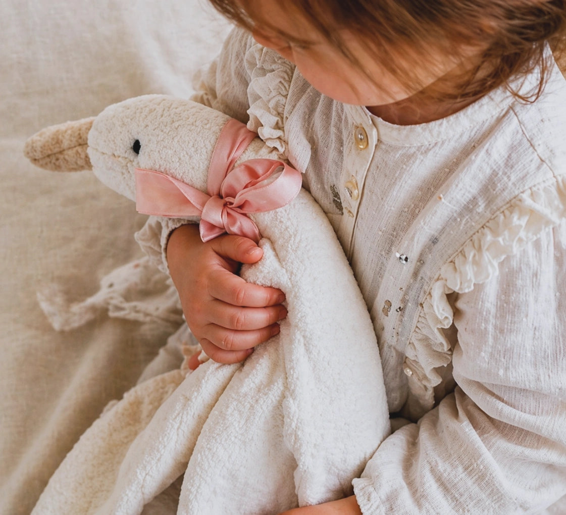 Uszyta ręcznie z bawełnianego, miękkiego „korzuszka”, jest delikatna dla wrażliwej skóry dziecka. Jej skrzydełka zostały zaprojektowane tak, aby otulać – jak małe, bezpieczne ramiona.