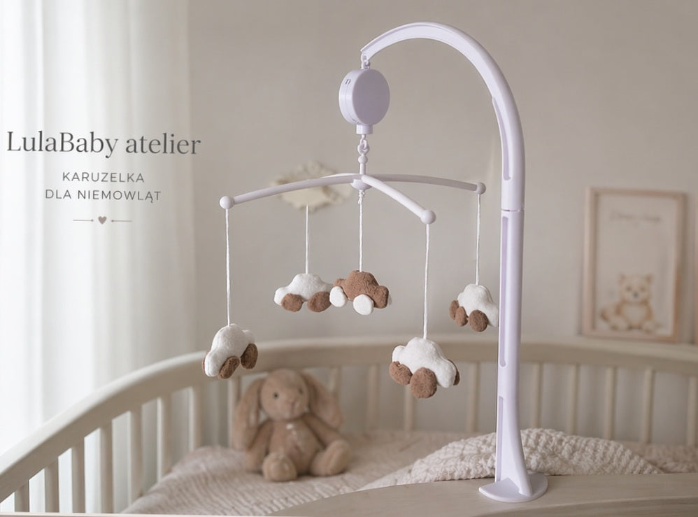 Delikatne autka poruszają się miękko nad łóżeczkiem, a spokojna melodyjka pomaga wyciszyć się i zasnąć.